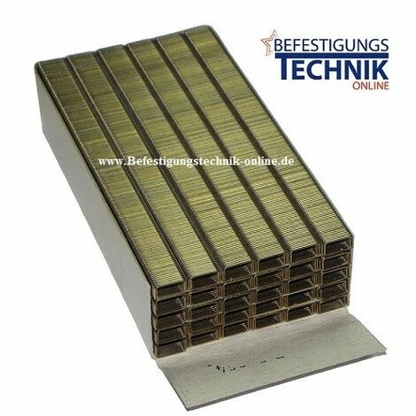 Rückenbreite 9 mm Innenmaß 7,8 mm Drahtmaß 0,75×0,60 mm Klammern / Stab 182 Stück Ausführung Meißelspitze, Stahl, verzinkt (C NK) Anwendungsbeispiele Befestigung von Stoffen, Leder,Folien,Plastic, Pappe und Dämmaterial Länge 12,00 mm Verpackungsinhalt 10’000 Stück